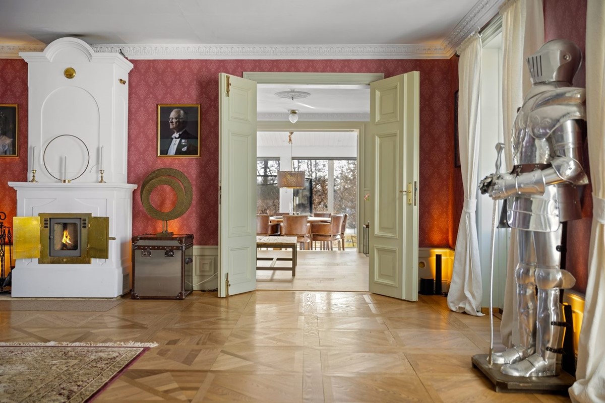 Welcome to a unique, beautiful and grandiose estate of highest international standard – a veritable mansion situated just by Vallentunasjön (Vallentuna lake), private and secluded, with an enormous garden and a complementary building garden house with a complete extra ”flat”. The main building is charmingly modernised, combining a cosy, familiar environment with representative elegance and all kinds of luxury, such as outdoor pool with spa, indoor relax sections with two saunas (!) and magnificent indoor pool, big furnished wine cellar, three tiled stoves (one of them in the master bedroom), one fireplace, dressing room, and more.