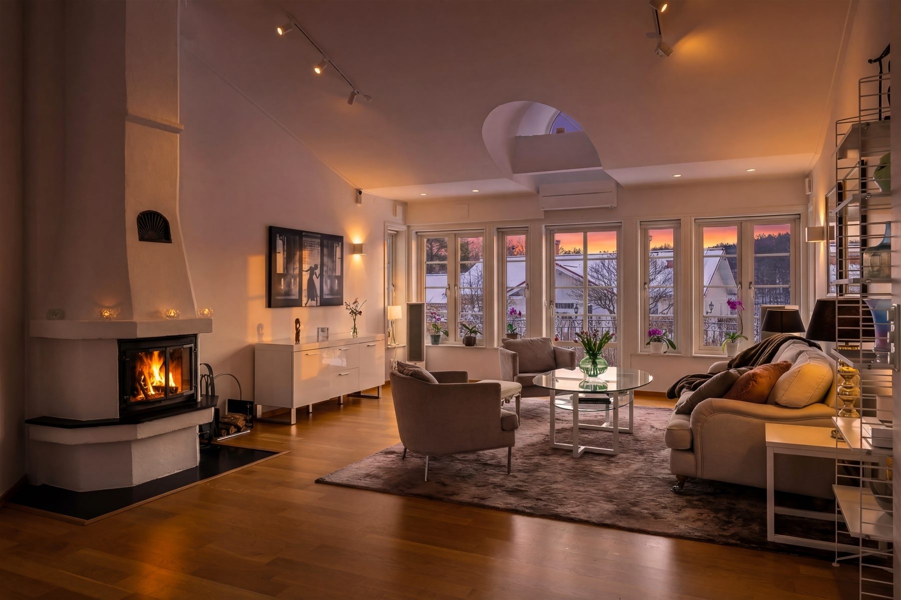 Golvvärme i hela huset. Genomtänkt belysning i alla rum. Härliga fönster med mycket ljusinsläpp. Imponerande takhöjd 2,70 m - 4,50 m. Genomgående smakfull interiör och stilrena materialval.