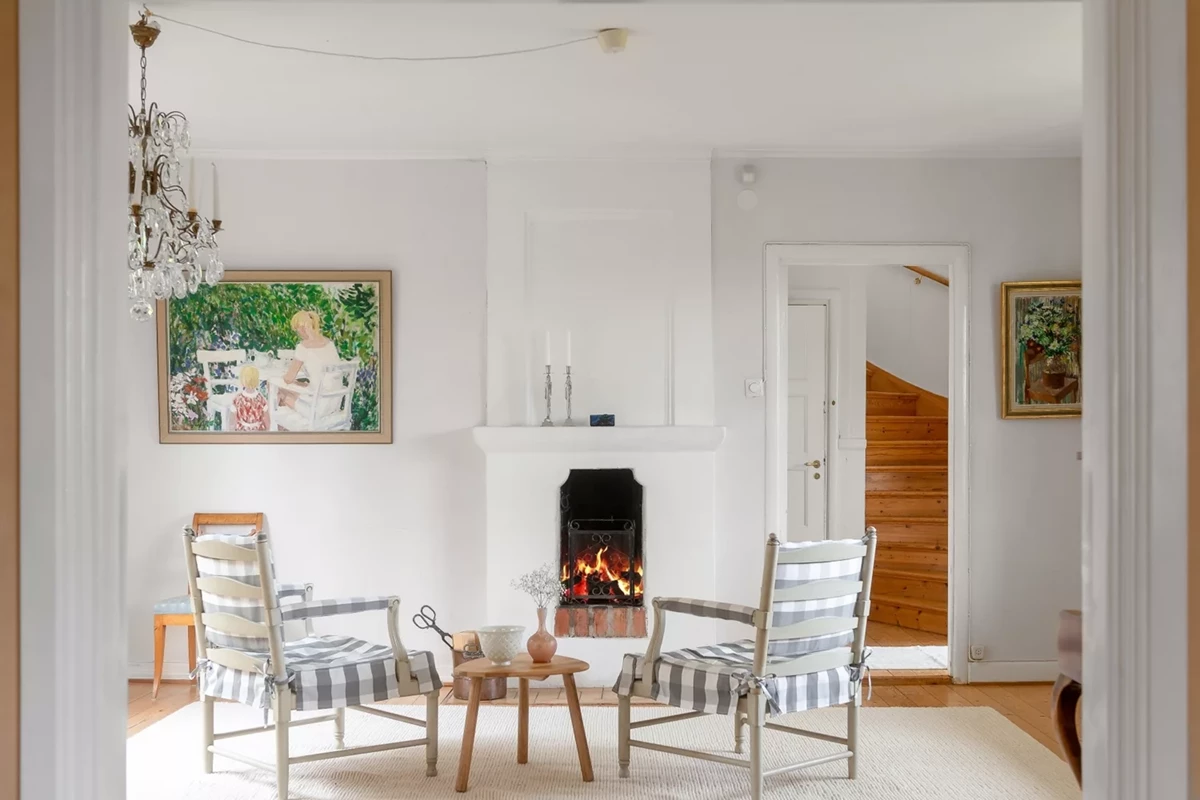 Mycket är bevarat av husets originalkaraktär och interiör från byggåret 1929, bland annat en praktfull eldstad i matsalen, stora spröjsade fönster samt plankgolv av furu på båda våningarna. Även planlösningen är tidstypisk och lite herrgårdsliknande med genomgående stora rum, särskilt matsalen och vardagsrummet, men även övervåningens master bedroom.