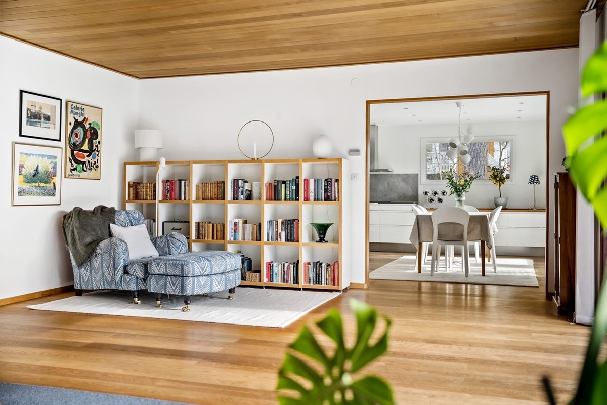 Villan har en välbevarad originalkänsla från byggåret 1973, framför allt i arkitektur och fasad, samtidigt som interiören har uppdaterats på ett varsamt sätt med omsorg om husets ursprung. Gedigna golv och tak och ett luftigt klassiskt trapphus.