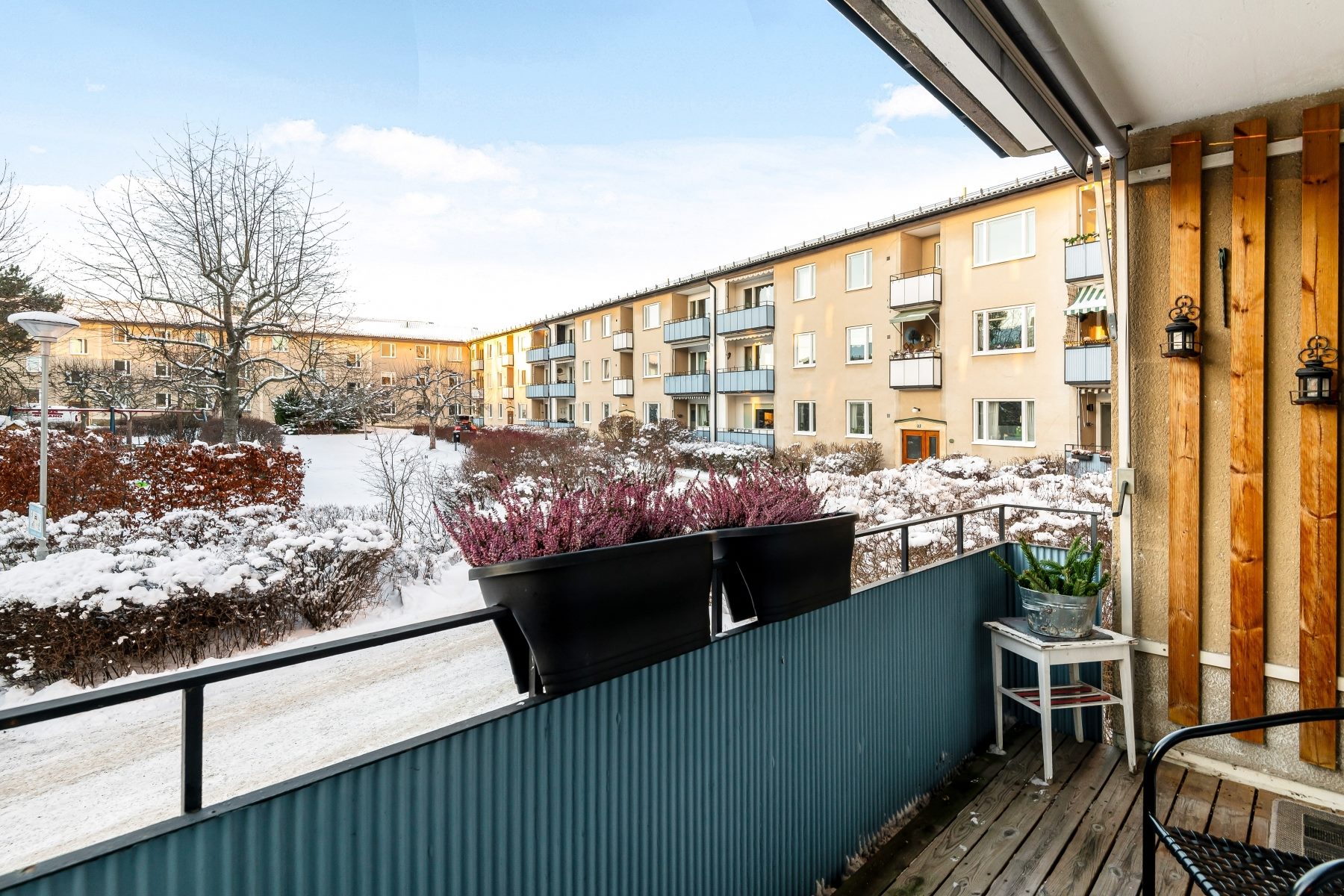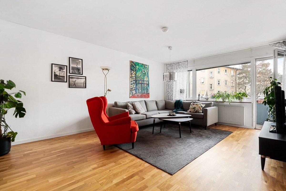 Perfekt planerad lägenhet med drömläge i charmig och välskött 50-tals fastighet med klassisk karaktär. Underbar balkong i söderläge med fri utsikt med grönska. Luftigt och soligt vardagsrum med utgång till balkongen. Modernt och ljust kök. Två bra sovrum. Mycket attraktivt läge vid Näsbypark Centrum, Roslagsbanan, bad och natur. Förening med mycket god ekonomi.