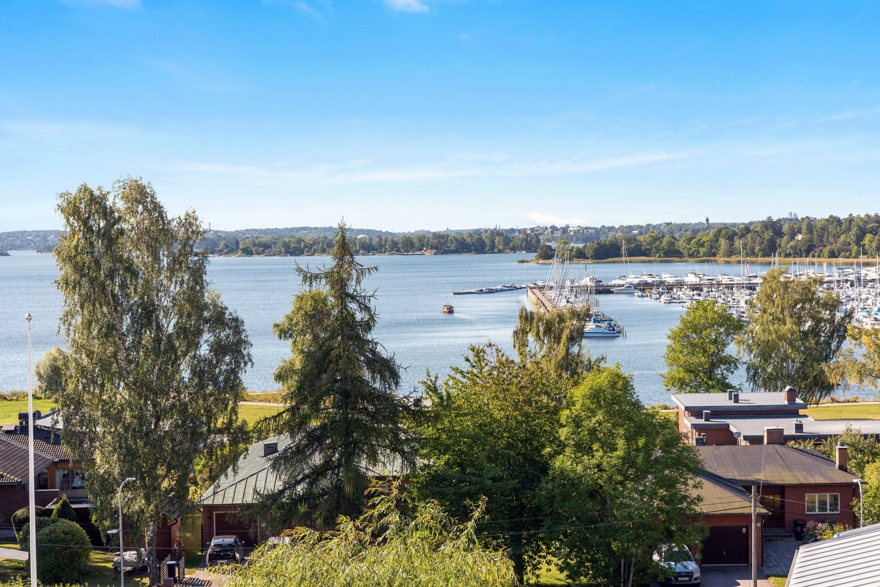 Exklusiv penthouse lägenhet högst upp med fritt läge och hänförande fri sjöutsikt över Värtan och Viggbyholms båthamn. Lägenheten upptar hela våningsplanet och har fönster i fyra väderstreck. Byggd 2008 i stilren arkitektur och med fina materialval. Optimalt planerad med kök och vardagsrum i öppen planlösning, förberett för kamin, två balkonger, varav en inglasad. Generösa sällskapsytor. 3 bra sovrum. Elegant badrum samt egen tvättstuga. Allt i toppskick. Underbart boende med villakänsla och de praktiska fördelarna med lägenhet. Idylliskt belägen i villaområde. OBS! i månadsavgiften ingår parkeringsplats, fiber för TV & bredband 100 Mbit samt två förråd. Sammantaget är detta utan tvekan en av Täbys absolut finaste lägenheter!