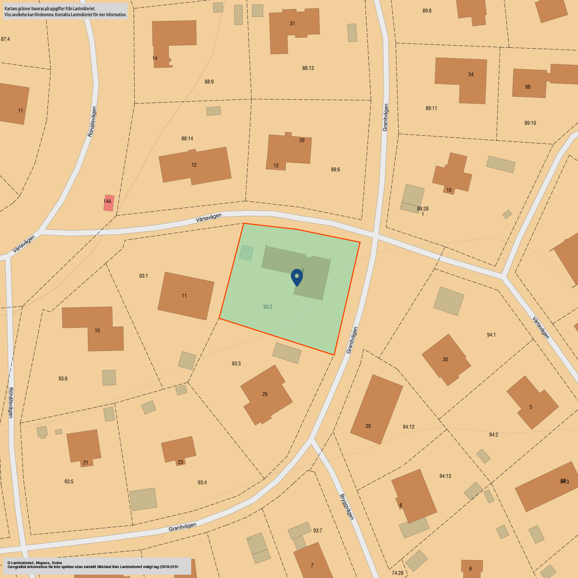 Två parkeringsplatser med plats för 3-4 bilar, en med infart från Värtavägen samt en med infart från Granitvägen. Laddare för elbil finns.