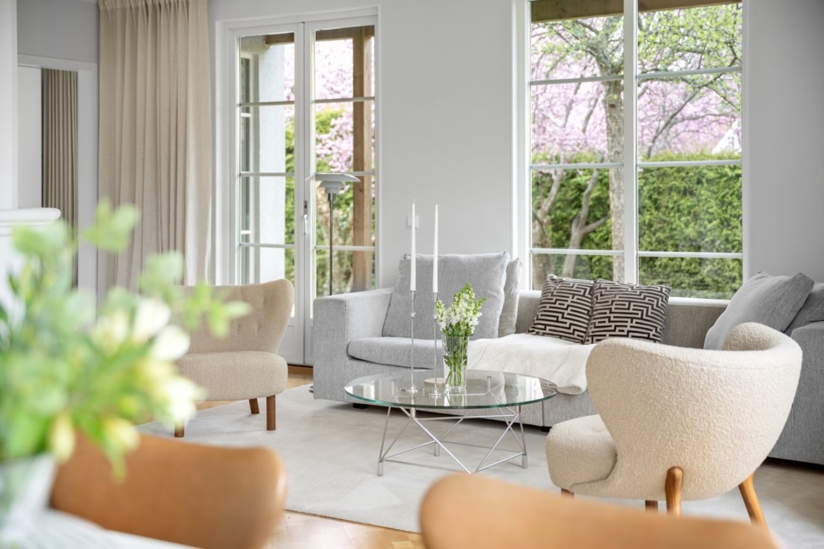Varmt välkommen till en mycket ståtlig, solig och vacker villa 6–7 rum – modern och samtidigt med tidlös stil och elegans, med ett sagolikt ljusinflöde via höga spröjsade fönster och matsalens burspråk. Villan präglas också av en fin rymd tack vare generös takhöjd, 2,6 meter på entréplan och 3 meter på övervåningen.
