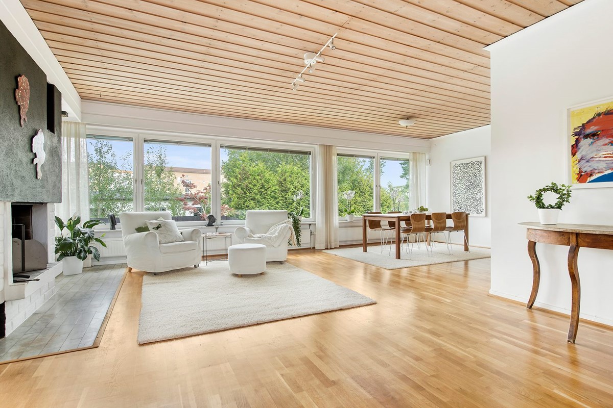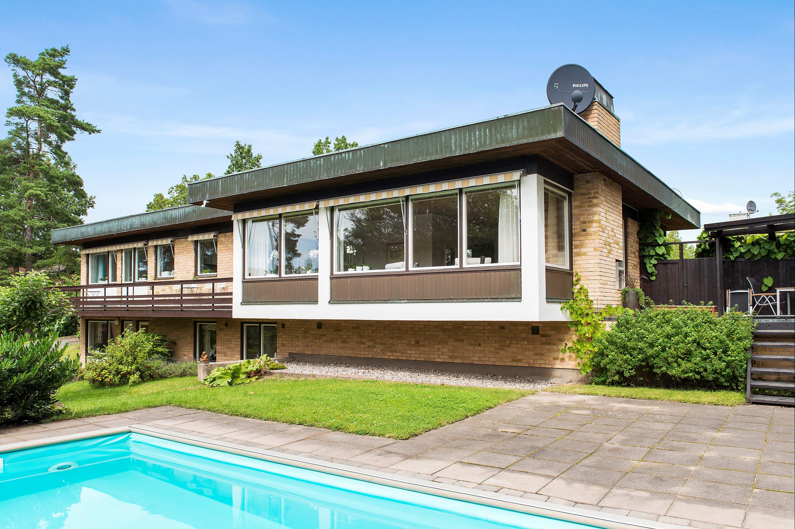 Inspirerad av dansk arkitektur och design skapade arkitekt Olof Ward denna vackra stilrena 60-tals enplansvilla med souterrängplan, totalt 432 m². Villan som är nära 30 m lång erbjuder rejäla sällskapsutrymmen, många sovrum och en praktisk företagsdel alternativt generationsboende. Solig fin trädgårdstomt med skyddad uteplats och en härlig pool. Lugnt och attraktivt belägen nära Näsby Park Centrum, kommunikationer och havet.